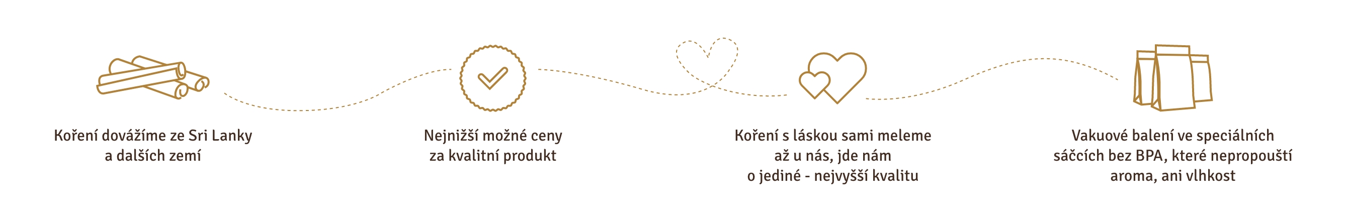 Jsme malý rodinný podnik se zaměřením na nejvyšší kvalitu koření. Sami dovážíme většinu našeho zboží, takže cena je tak nízká, jak je to možné. V čem ale vynikáme, je vlastní mletí koření, které dělá jen minimum kořenářů, díky kterému jsme schopni garantovat vysokou kvalitu, čerstvost a také složení. Koření dostanete vakuově zabalené ve speciálních sáčcích bez BPA, které nepropouští aromatické látky a vlhkost, tudíž na Váš stůl se dostane opravdu jen to nejlepší.